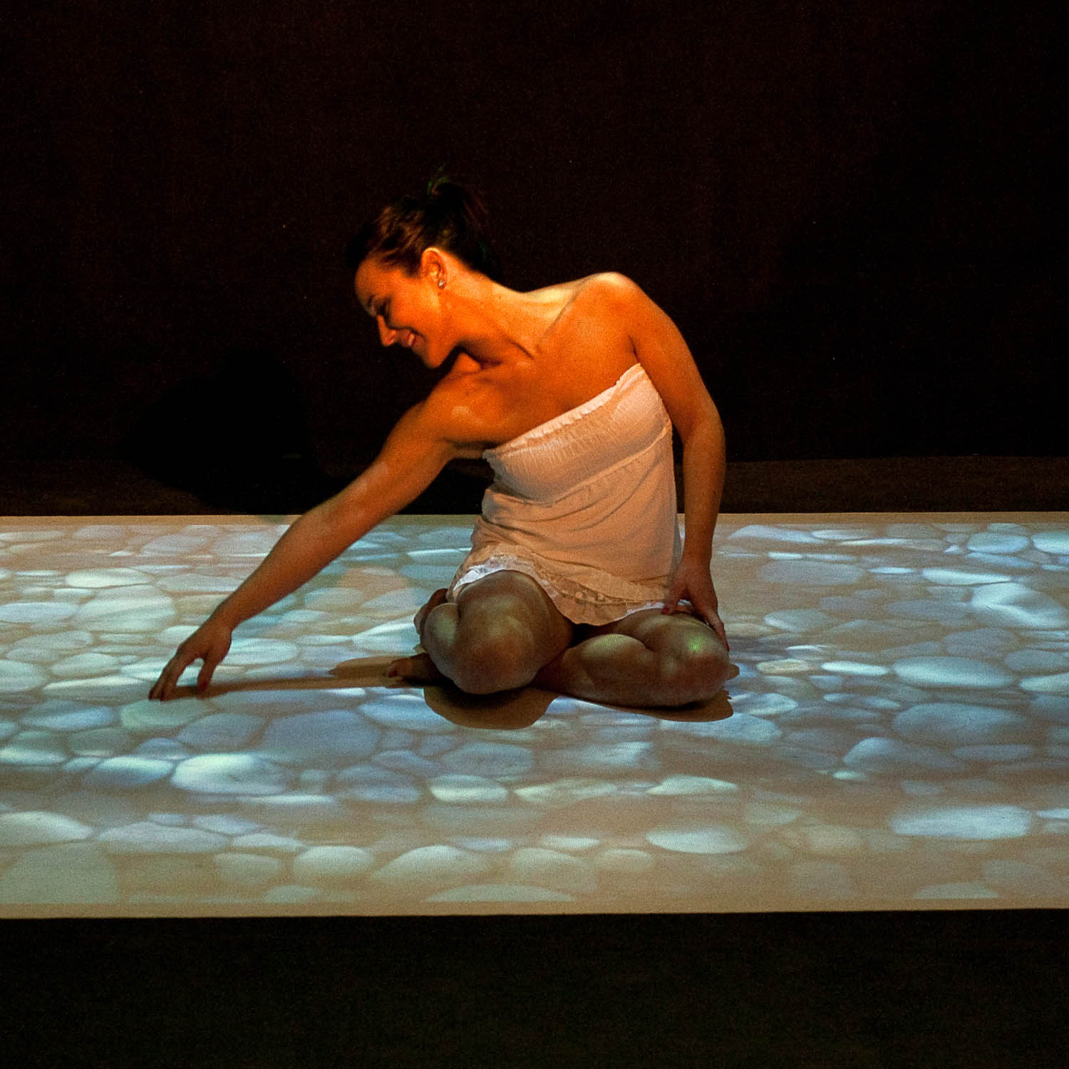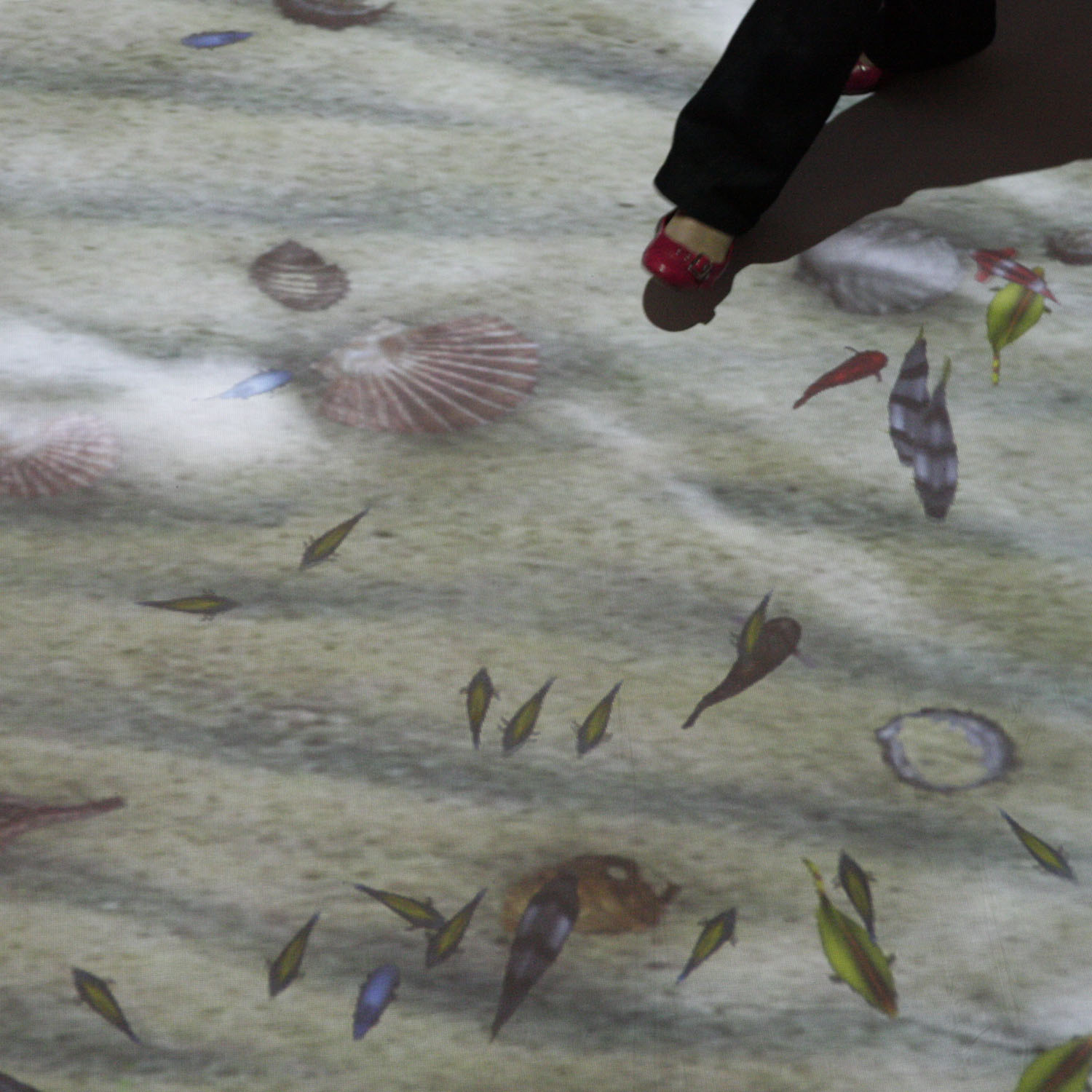 Il dispositivo si installa a soffitto e attraverso una proiezione dall’alto verso il basso dà vita ad una sorta di tappeto virtuale composto da immagini e filmati interattivi.