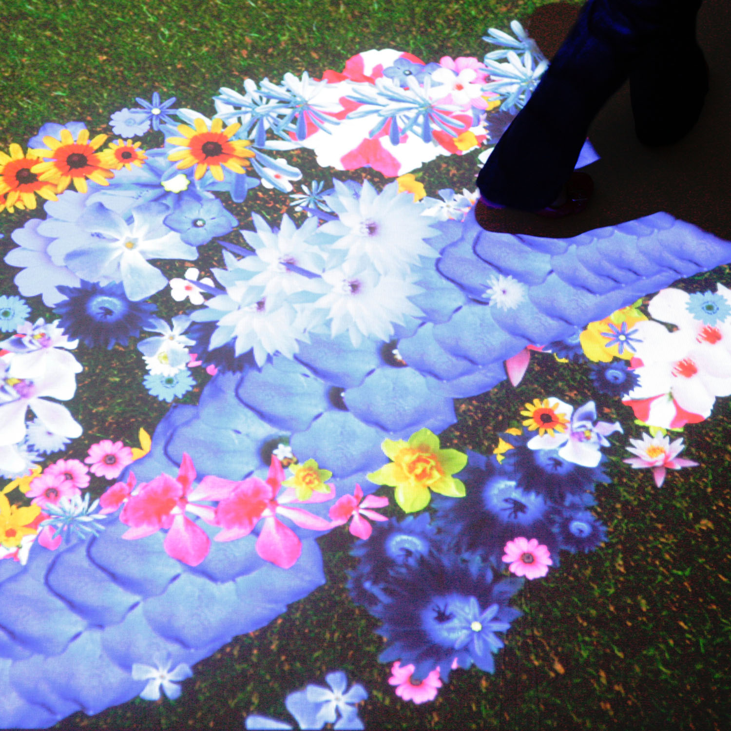 Ogni comune pavimento può essere così animato da infinite grafiche digitali che mutano al passaggio delle persone attraverso effetti visivi e sonori di grande impatto emozionale e divertimento assicurato.